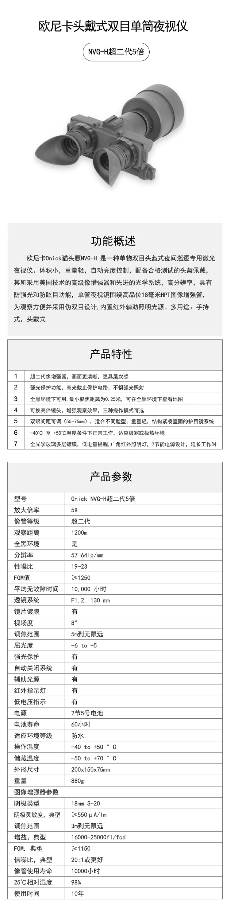 欧尼卡(Onick) NVG-H 超二代 微光夜视仪(单位:台)