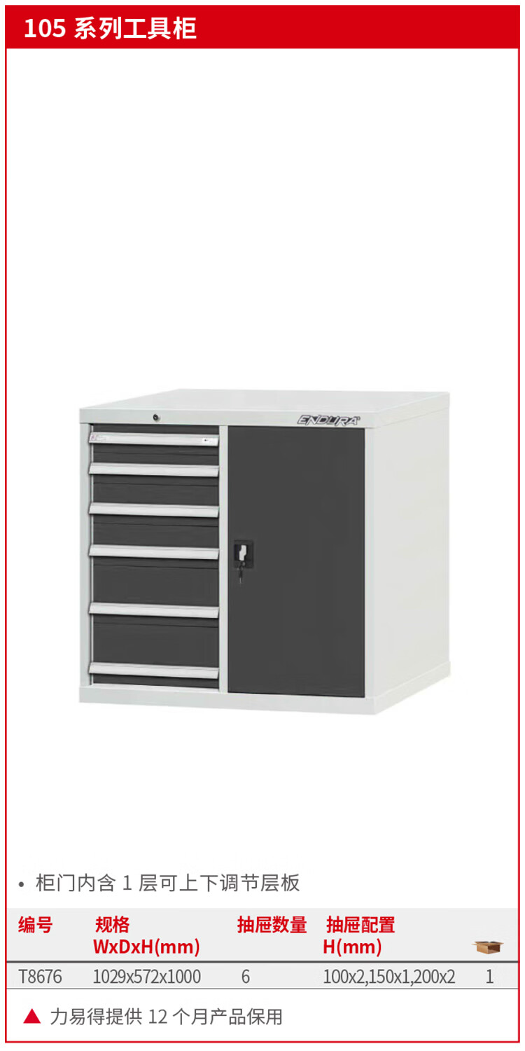力易得(ENDURA) T8676 105系列6抽1门工具柜 1029*572*1000mm(单位:个)