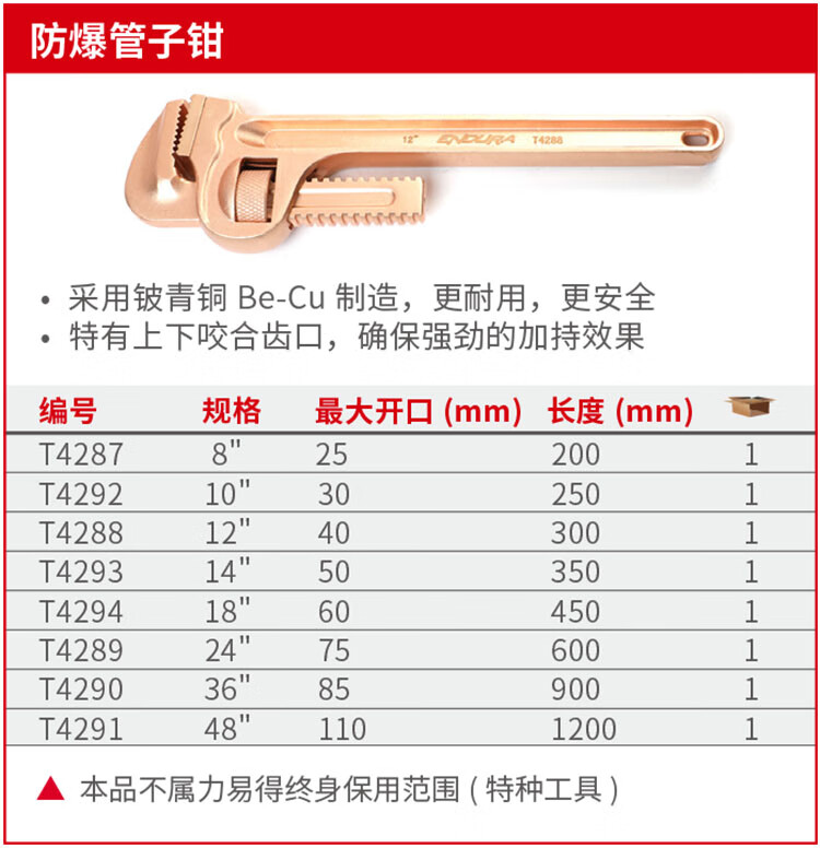 力易得(ENDURA) T4293 防爆管子钳 14"(单位:把)