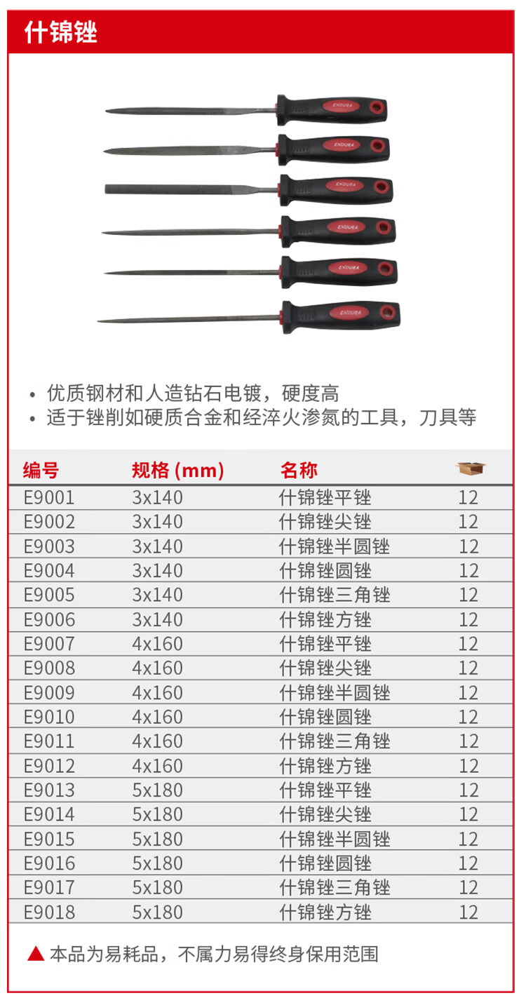 力易得(ENDURA) E9009 什锦锉半圆锉 4*160mm(单位:把)