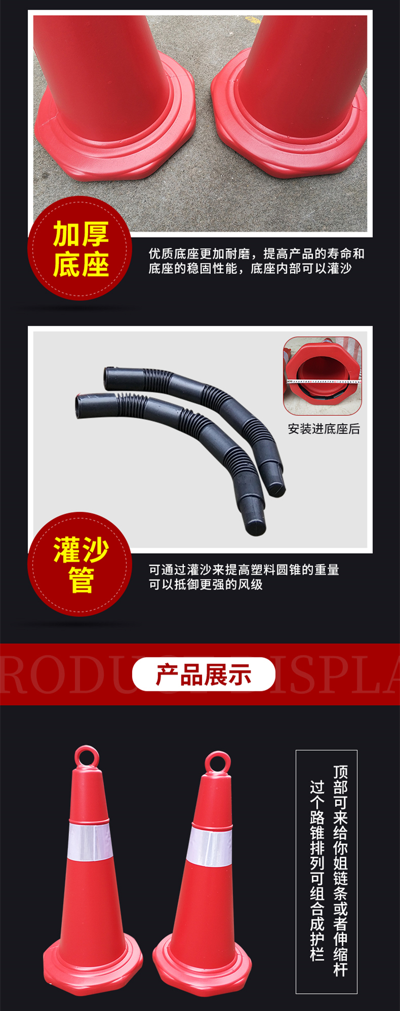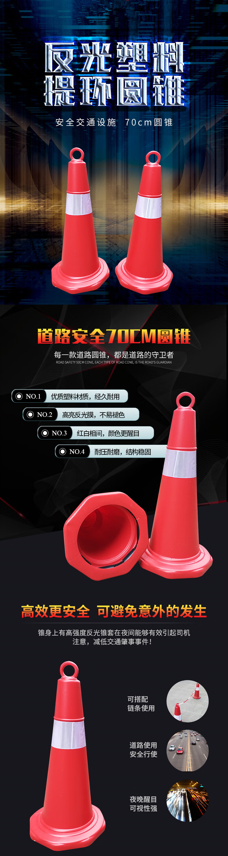谋福 8410 路锥 高70cm 底座29cm*29cm (单位:个) 红白相间