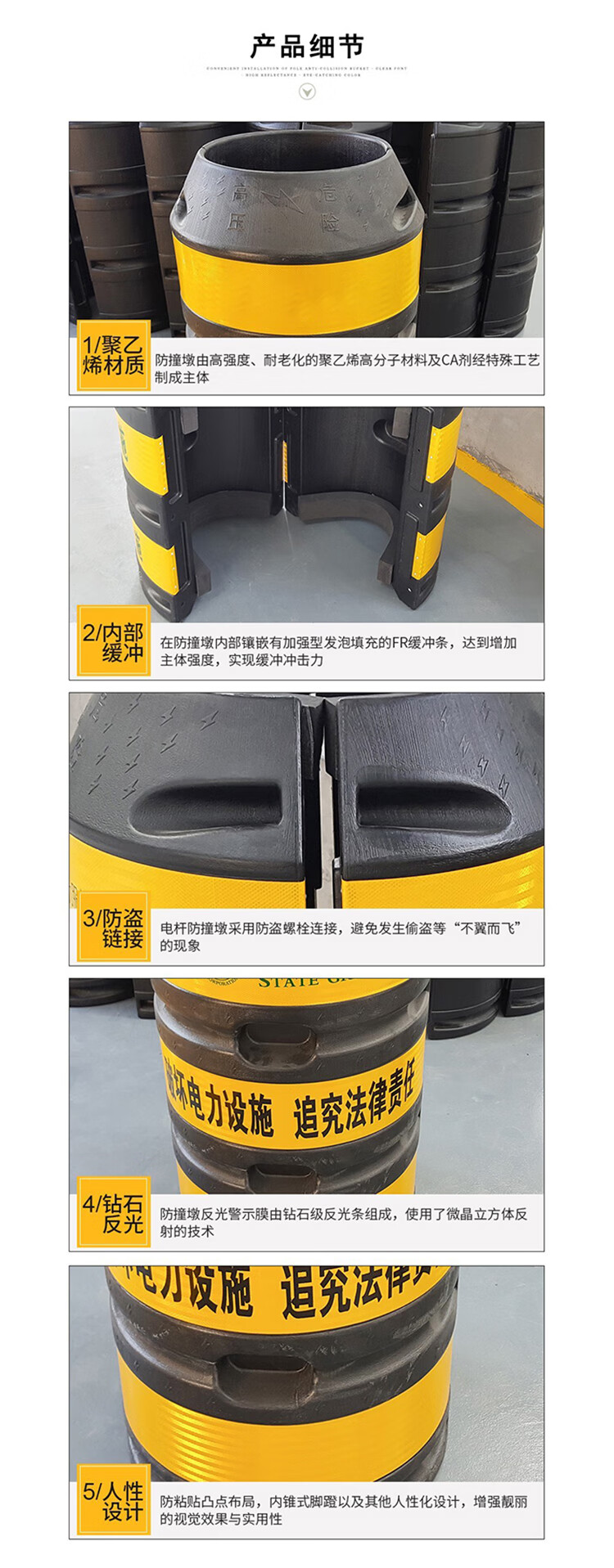 景呈电力 JC12065 防撞桶 650mm长*650mm宽*1200mm高 聚乙烯 (单位:个) 黄黑
