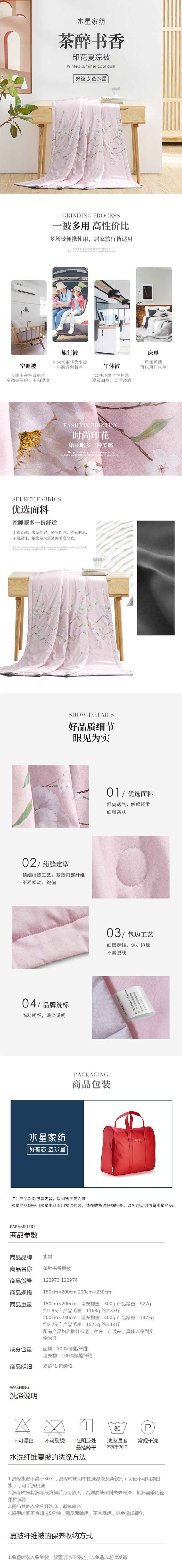 水星家纺 茶醉书香 夏被 150*200cm(单位:床)