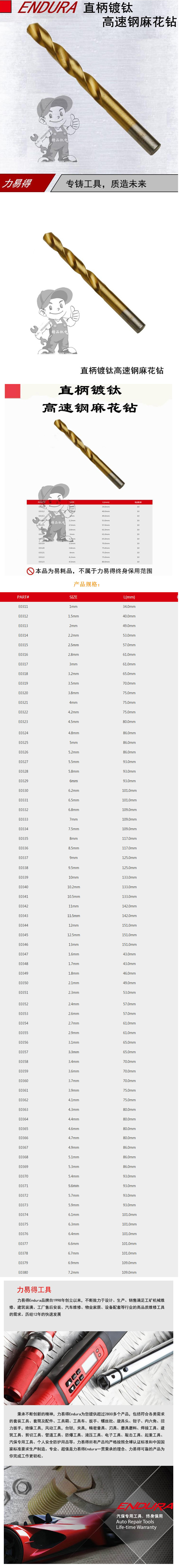 力易得(ENDURA) E0333 直柄镀钛高速钢麻花钻 7.0mm(单位:个)