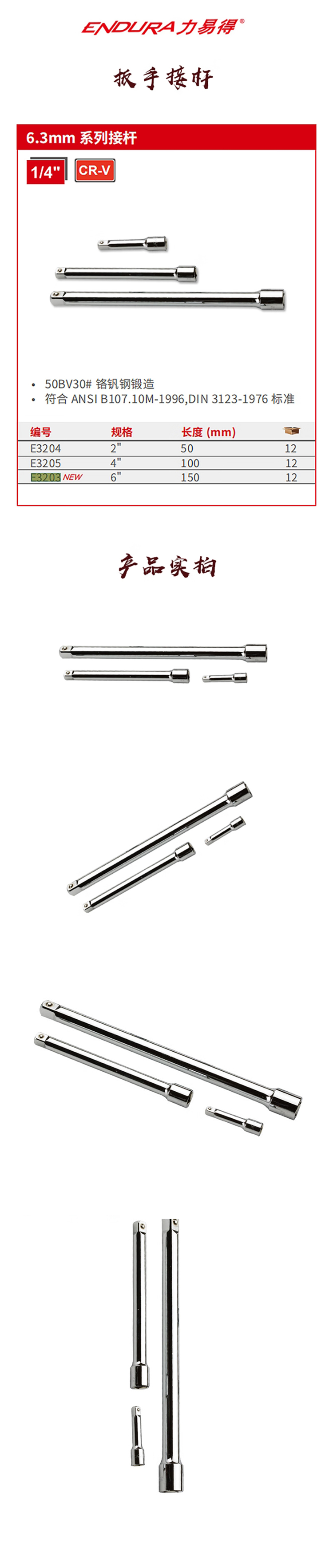 力易得(ENDURA) E3204 6.3mm系列接杆 2英寸(单位:把)