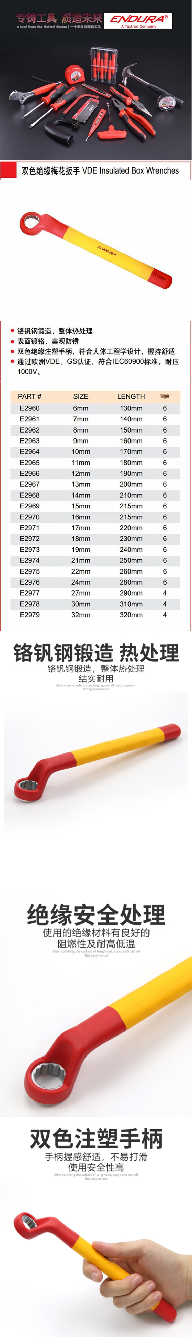 力易得(ENDURA) E2978 VDE双色绝缘梅花扳手 30mm(单位:把)