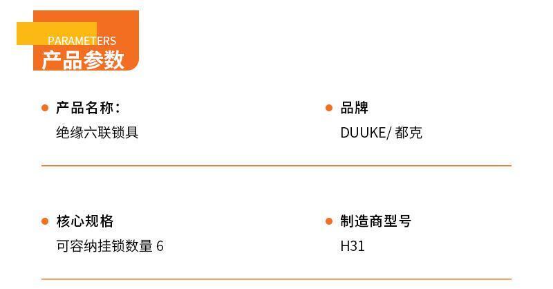 都克 H31 绝缘六联锁具 挂锁孔径9mm 锁钩直径6mm (单位:个)