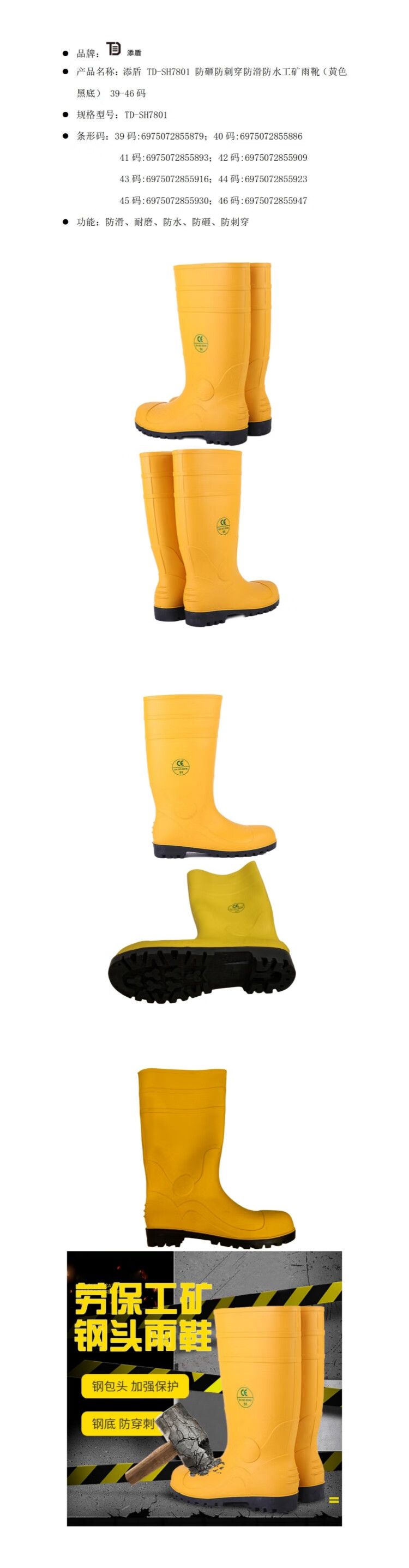 添盾 TD-SH7801 防砸防刺穿工矿雨靴 45码 (单位:双) 黄色黑底