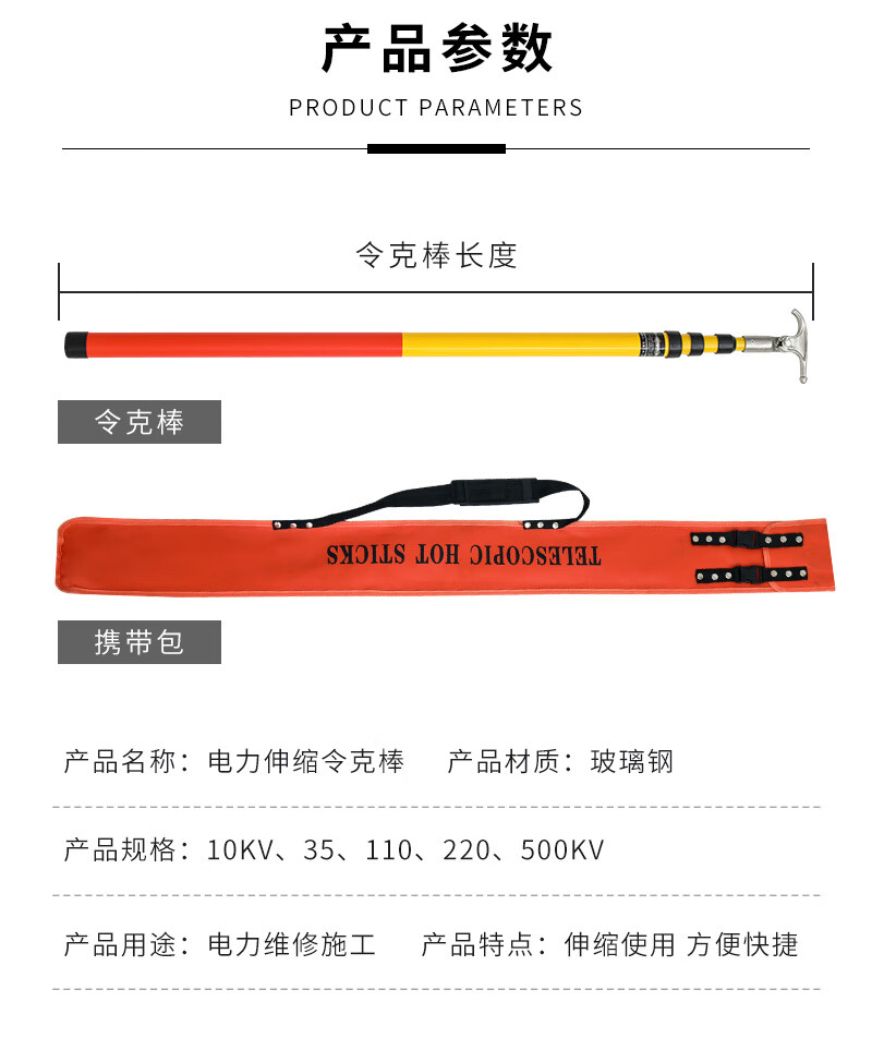 冀东创 JDC-LKB-14 高压伸缩拉闸杆 令克棒 5节8m 220KV (单位:根) 红黄