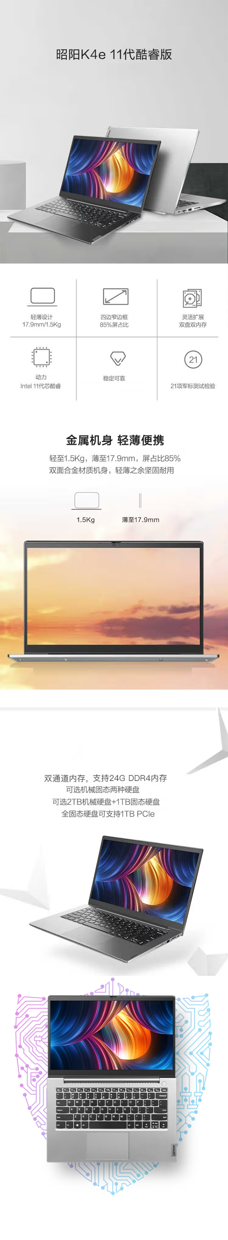 联想(Lenovo) 昭阳K4e-IIL082 笔记本电脑(单位:台) i5-1035G1/8G/512G SSD/MX450 2G独显/win10/14英寸