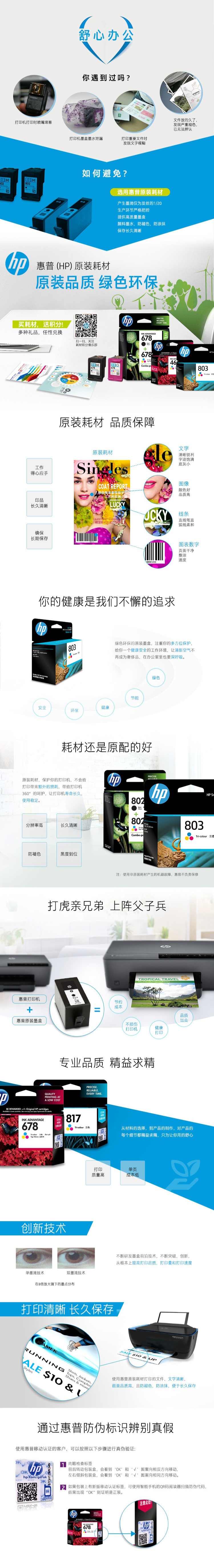 惠普(HP) 803 原装墨盒 165页(单位:个) 适用HP1111/1112/2131/2132/2621/2622 彩色