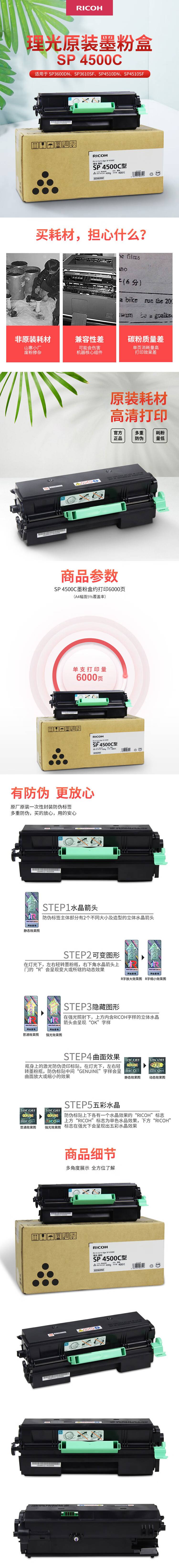 理光(Ricoh) SP 4500C 墨粉盒 6000页(单位:支) 适用SP 3600DN/4510DN/ 3610SF/4510SF 黑色
