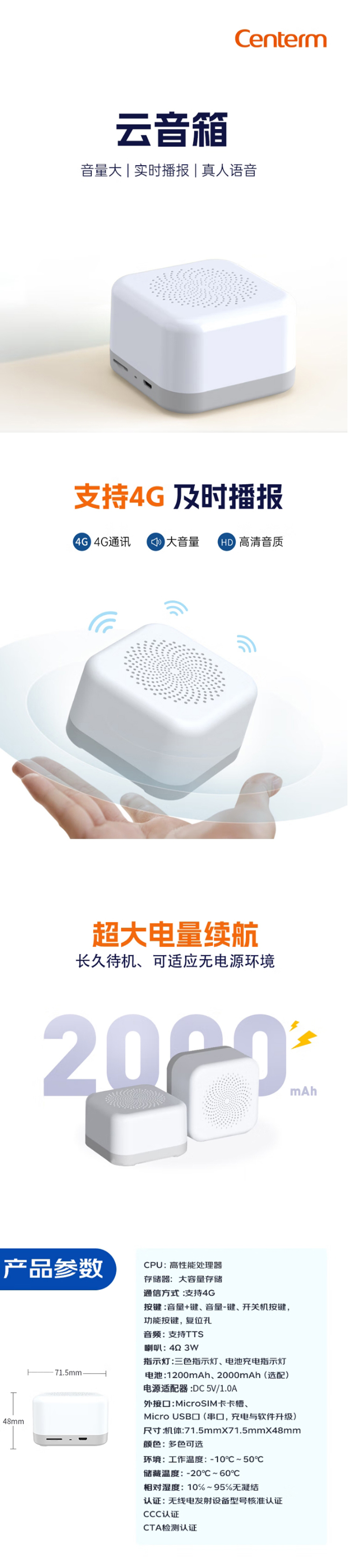 升腾资讯(CENTERM) S01 云音箱 71.5*71.5*48mm(单位:台) 4G+WIFI+三年流量卡 白色