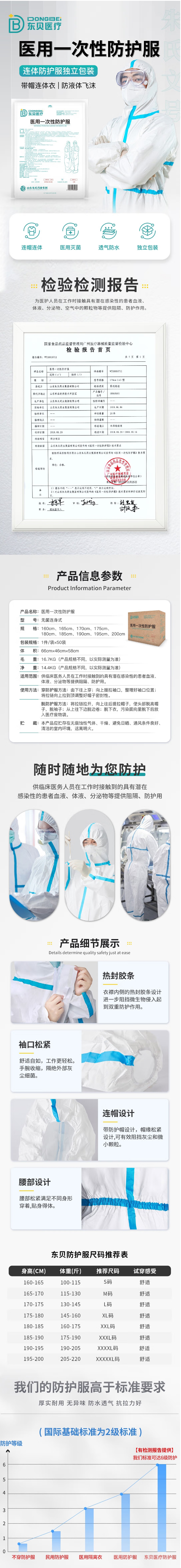 东贝医疗(DONGBEI) 不连脚式 医用一次性防护服 165/170/175/180/185cm 50套/箱(单位:箱)