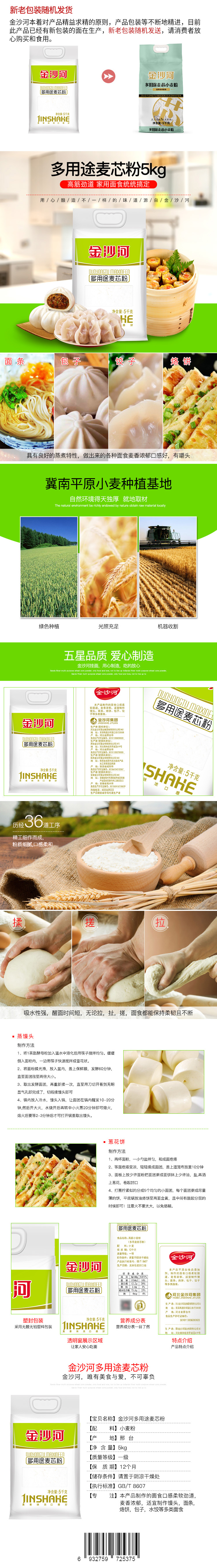 金沙河 多用途麦芯 小麦粉 5KG(单位:袋) 新老包装随机发货