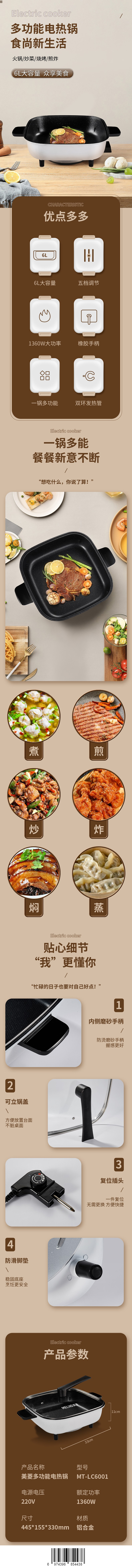 美菱(MeiLing) MT-LC6001 多功能电火锅 6L(单位:台) 白色