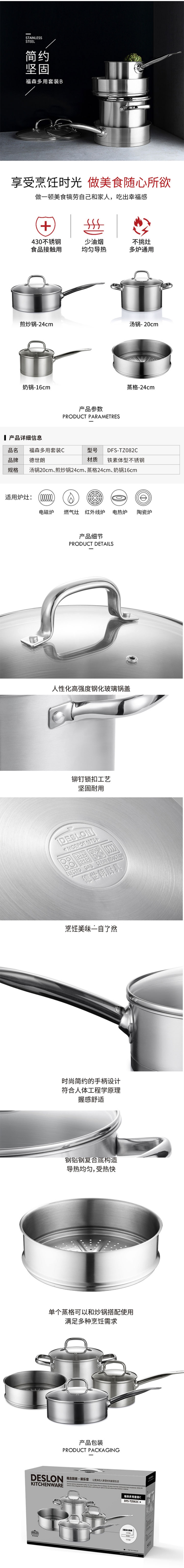 德世朗 DFS-TZ082C 福森多用套装C 锅具四件套(单位:个) 直径16cm奶锅/直径20cm汤锅/直径24cm煎炒锅/直径24cm蒸格