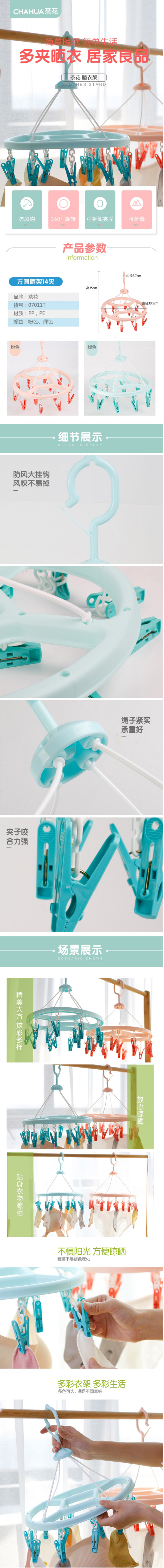 茶花(CHAHUA) 07011T 圆形晾衣架14夹 高35cm*直径30.5cm*内径3.7cm(单位:个) 粉色