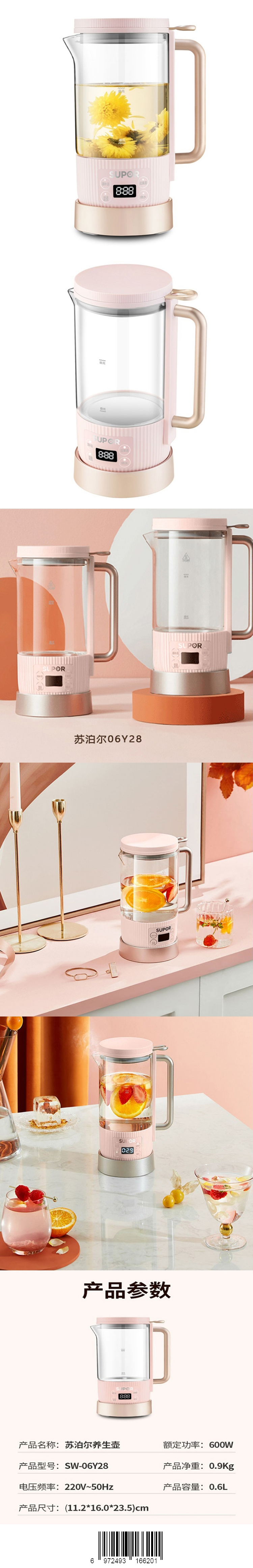 苏泊尔(SUPOR) SW-06Y28 煮茶壶/养生壶 0.6L(单位:台) 粉色