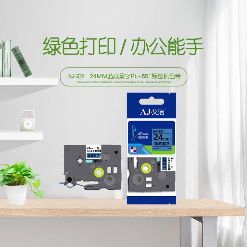 艾洁(AJ) AJ-PL-551 标签机色带 宽24mm*长8m (单位:个) 适用兄弟PT-1010/1100CH/1280/1400/18R TZe-551标签机色带 蓝底黑字