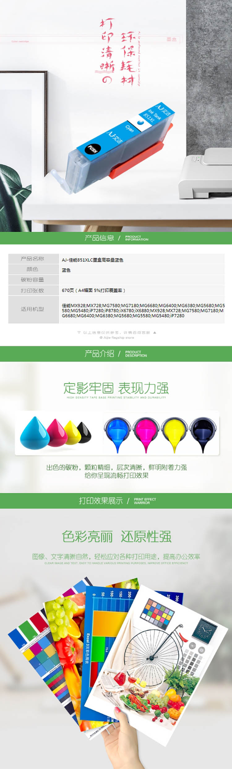 艾洁(AJ) 851XLC 高容量墨盒 670页(单位:支) 适用佳能MX928 MG6400 iP7280 iX6880 蓝色