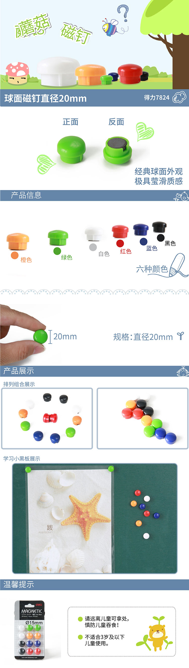 得力(deli) 7824 20mm磁钉 20mm(单位:卡) 12个/卡 混色
