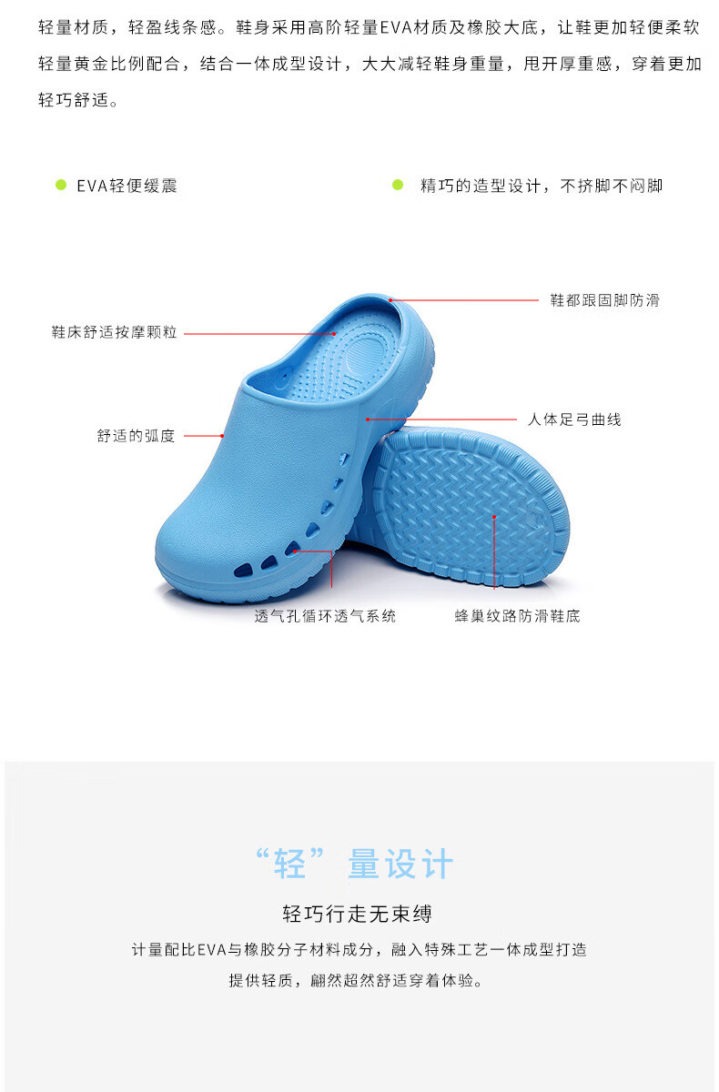 谋福 21款 EVA包头手术工作鞋拖鞋 有带 41/42码 (单位:双) 豆沙绿
