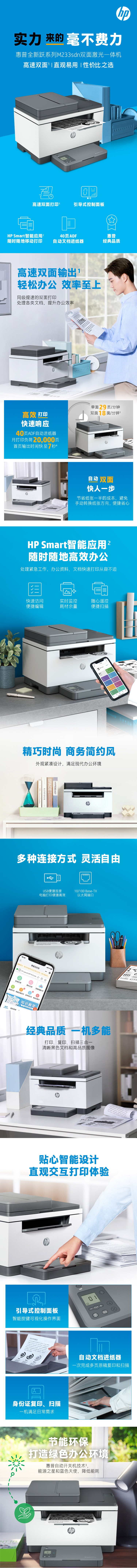 惠普(HP) M233sdn 多功能一体机 418*308*294mm (单位:台) 自动双面