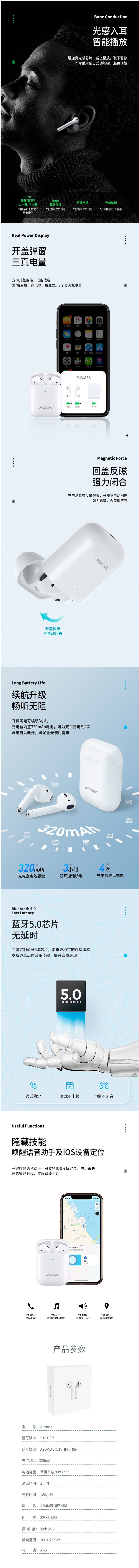 沃品 AirBass 无线蓝牙耳机 耳机单边30mAh*2(单位:副) 白色