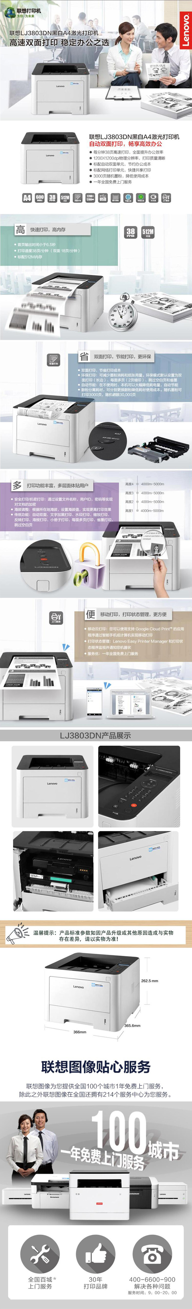 联想(lenovo) LJ3803DN 高速黑白激光打印机 A4(单位:台) 38页/分钟