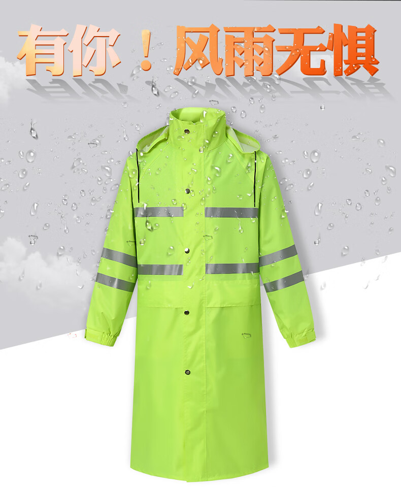 谋福 271 长风衣加帽檐加黑裤 反光雨衣套装 M码 (单位:套) 荧光绿