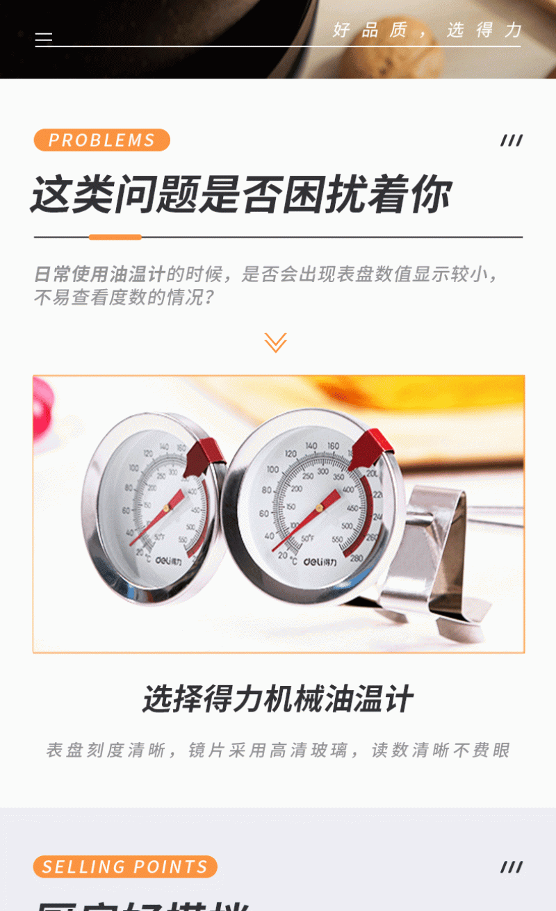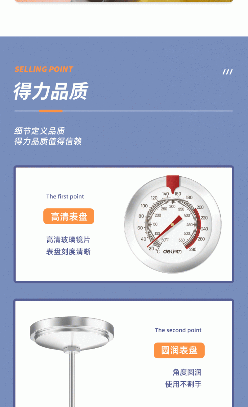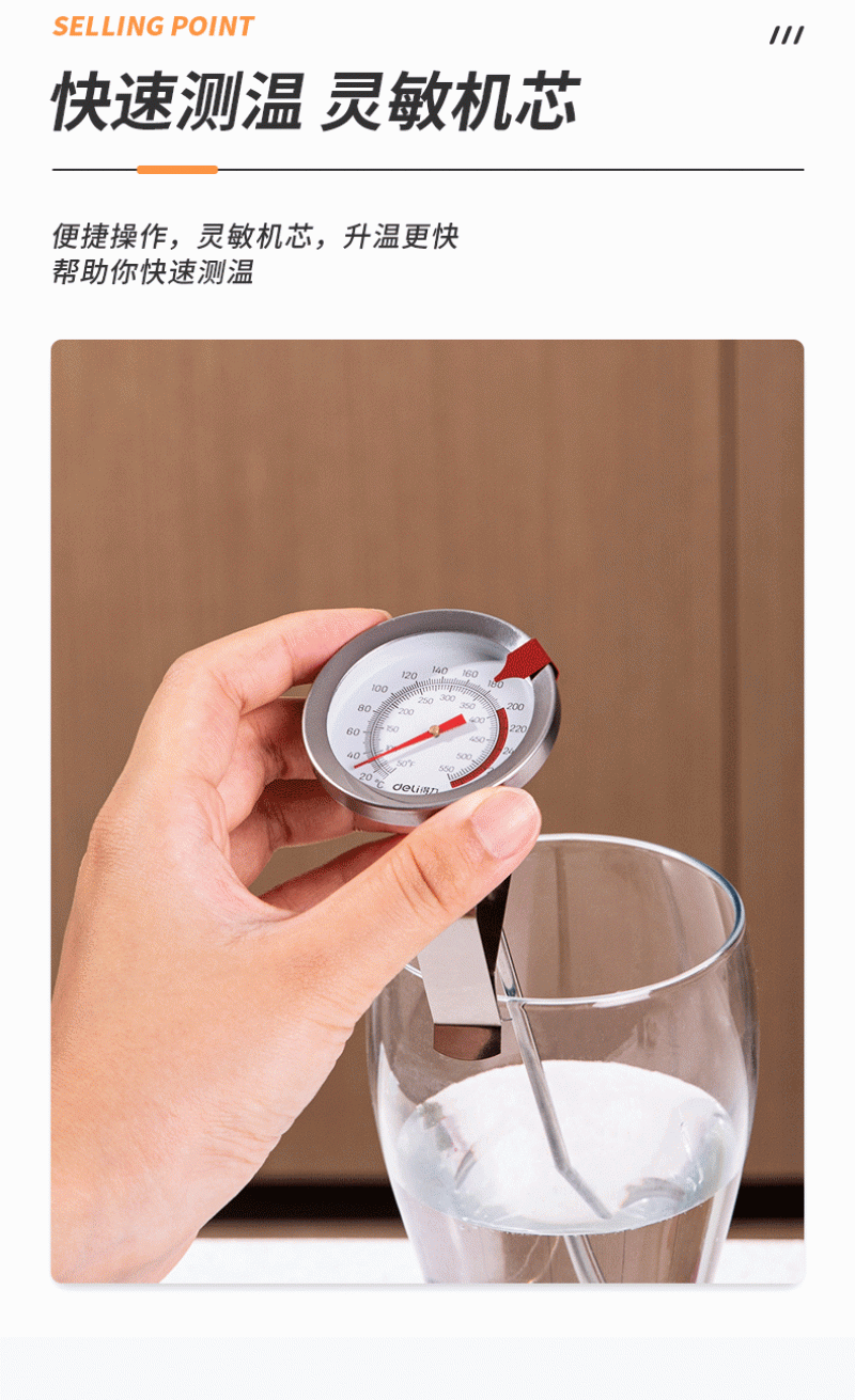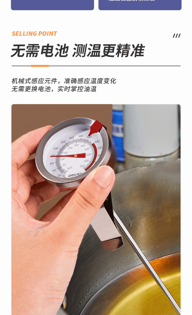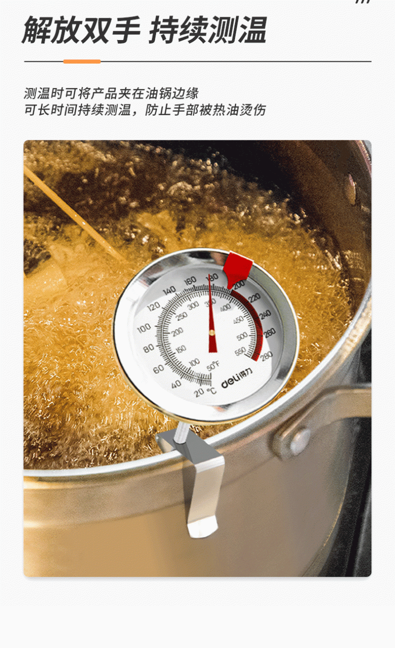 名称 得力(deli)机械油温水温计 油炸食品油温表 自带可移防烫夹 探针30cm LE551
