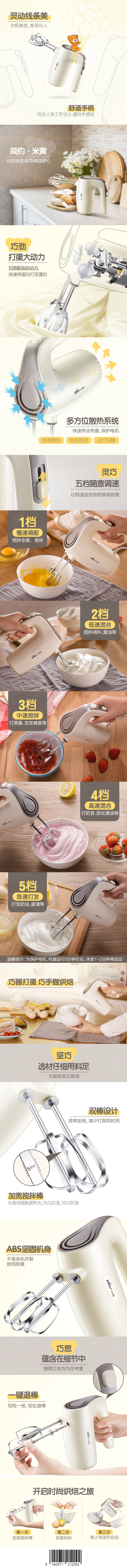 小熊(Bear) DDQ-B02F1 打蛋器 长180mm*宽40mm*高140mm(单位:台) 打蛋 打奶油档位可调
