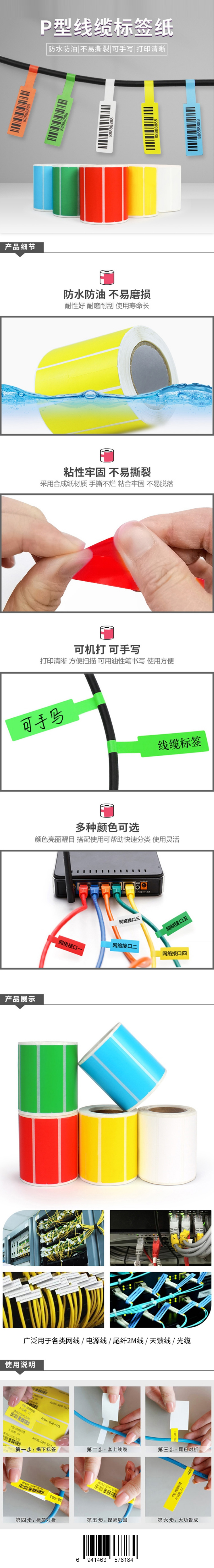 安赛瑞 26090 P型线缆标签纸 24mm*40mm*30mm(单位:包) 500张/包 绿色