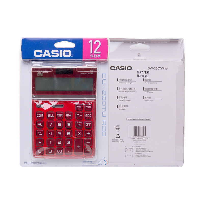 卡西欧(CASIO) DW-200TW-RD 魅雅系列 大型计算器 12位(单位:个) 浓情红