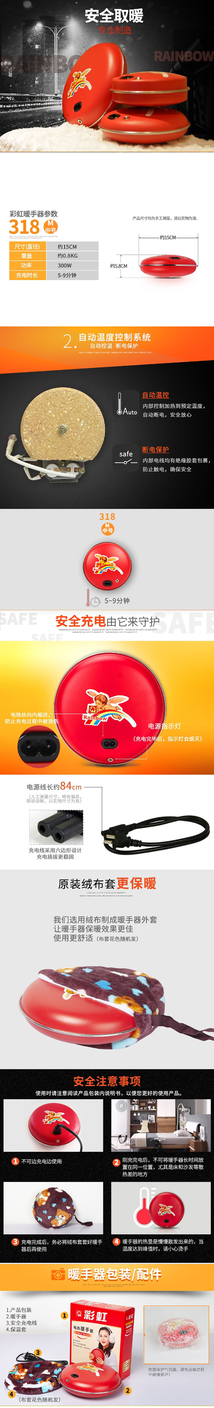 彩虹(rainbow) 318 充电式暖手宝 中号 直径15cm(单位:个)