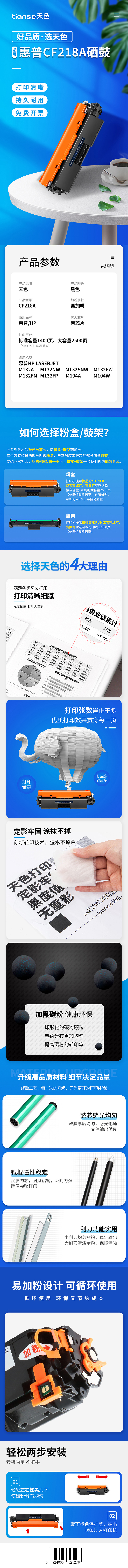 天色(TIANSE) CF218A 标准版粉盒(易加粉) 1400页(单位:个) 适用于 HP LaserJetPro M102A/M102W/M104A PRINTER 黑色