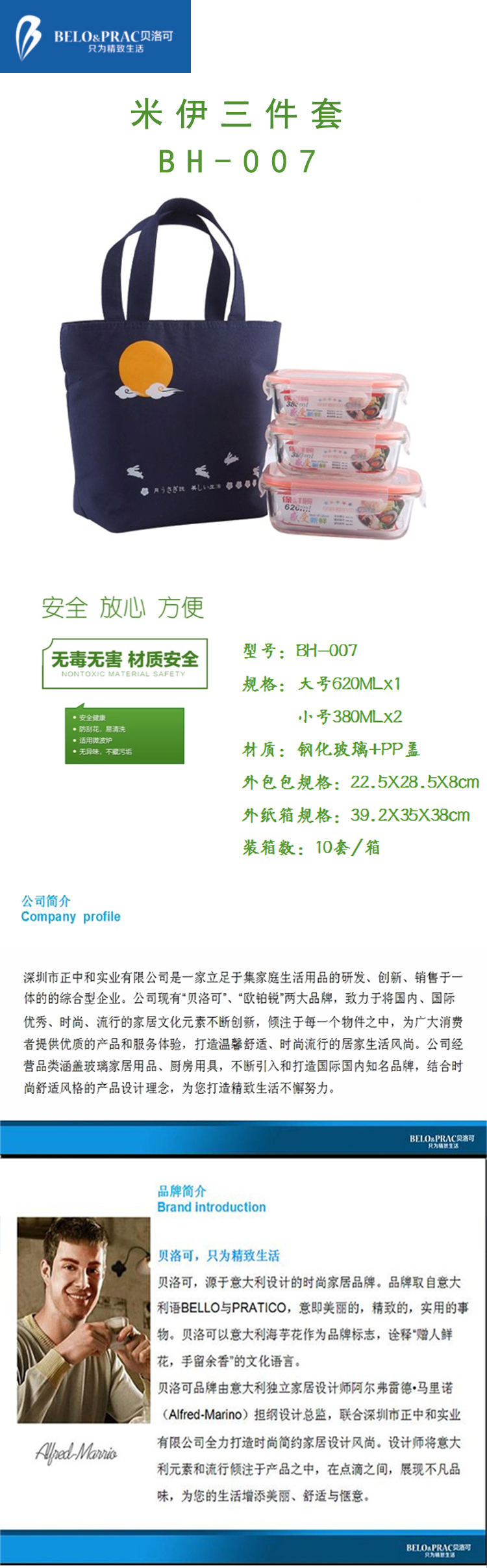 贝洛可 米伊保鲜盒三件套 BH-007 大号620ML 小号380ML*2 红色