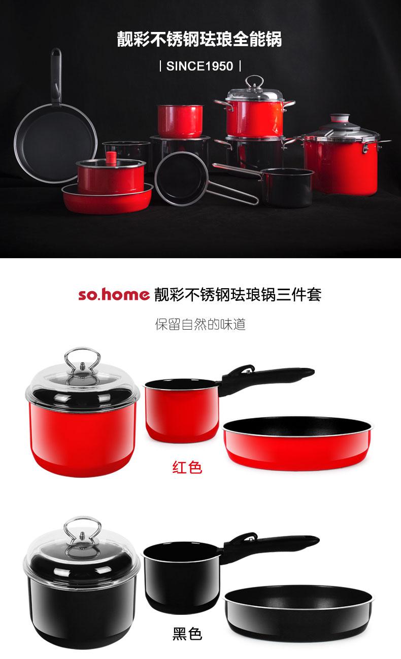Sohome 靓彩不锈钢珐琅锅三件套 GR458-A 颜色随机发货