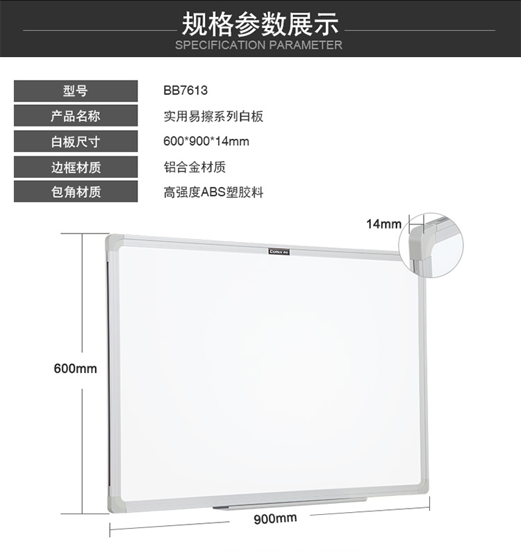 齐心(COMIX)BB7613 实用易擦系列白板(90*60cm)