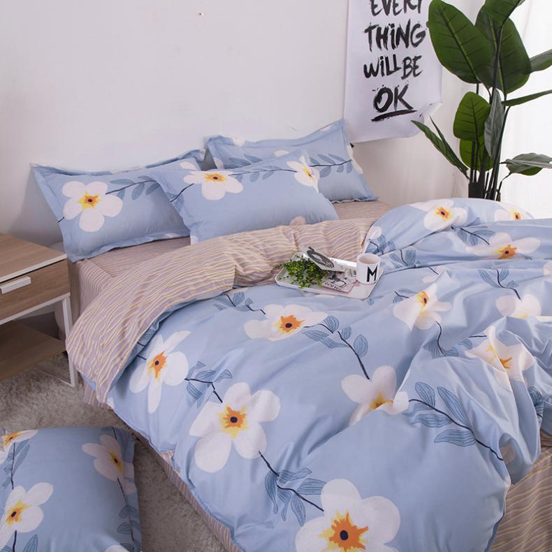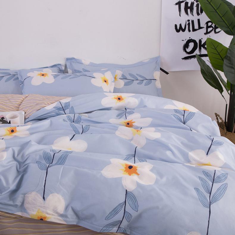 木辛梓 亲肤棉印花四件套 花田蓝黄色 200×230cm 床上用品四件套床单被套枕套