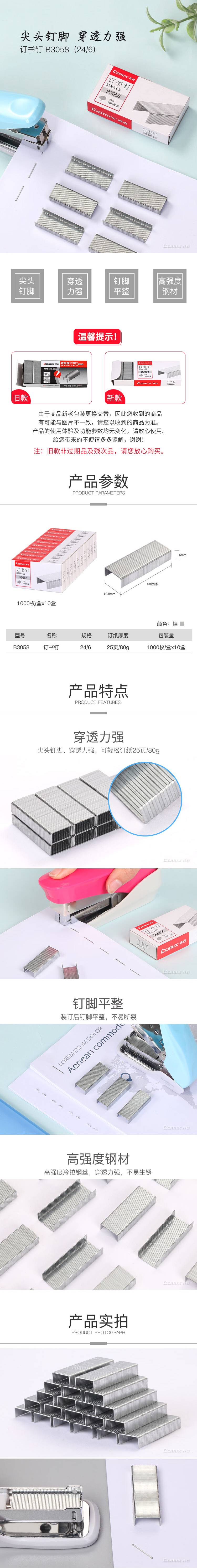 齐心(Comix) 24/6订书针 B3058 1000枚/盒 12#订书机通用