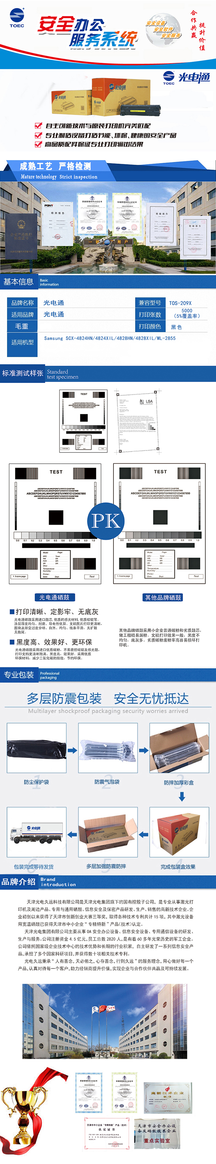 光电通硒鼓 TOS-209X 适用于 Samsung SCX-4824HN/4824XIL/4828HN/4828XIL/ML-2855 黑色