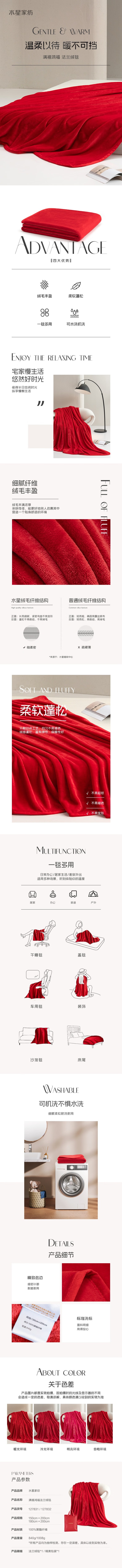 水星家纺(MERCURY) 127831 DH满禧鸿福法兰绒毯 150*200cm (单位:条) 红色