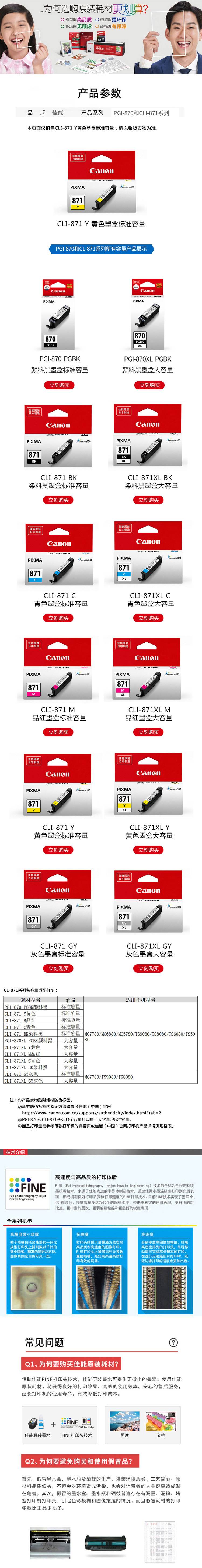 佳能CLI-871XL C 青色墨盒(适用MG7780、TS9080、TS8080、TS6080)