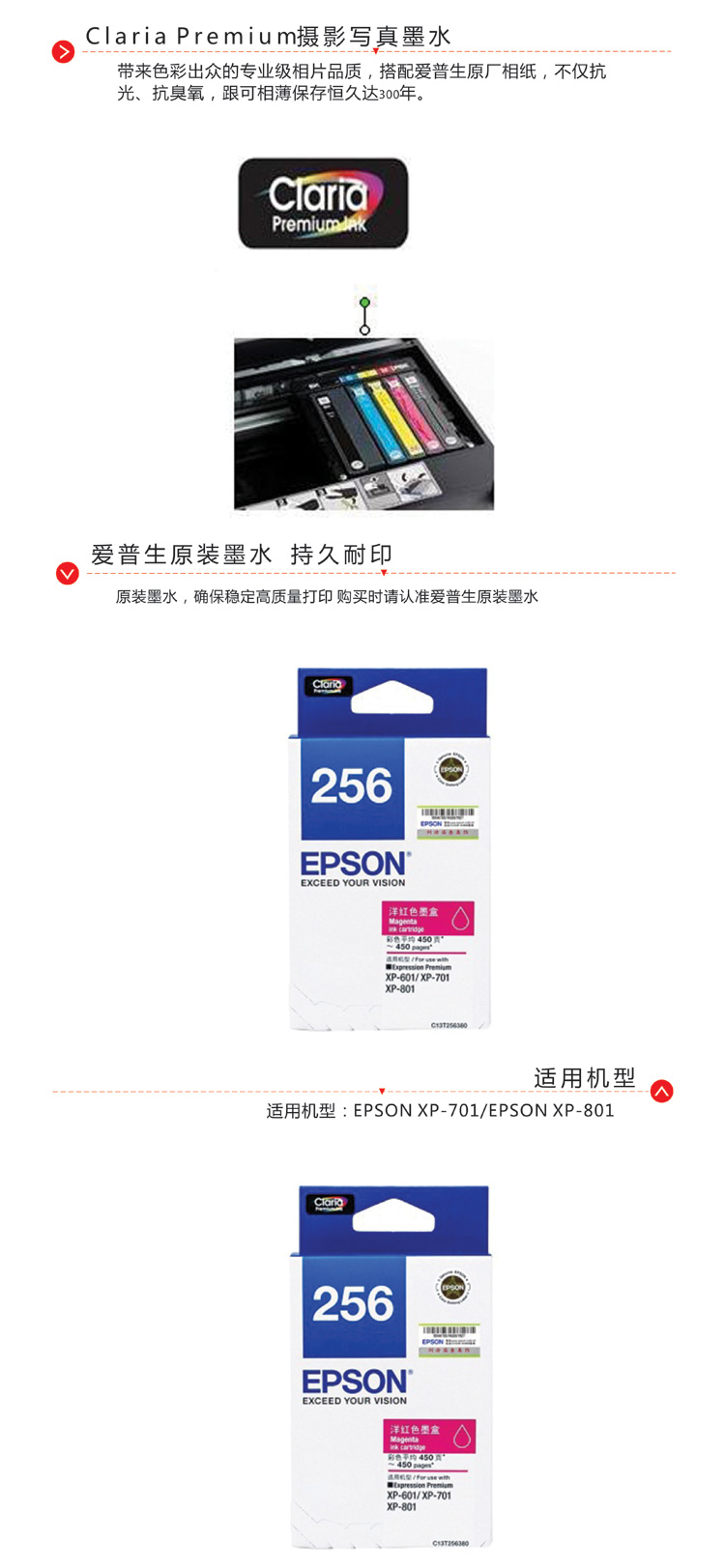 爱普生 T2551墨盒适合XP-821 XP721 701 801打印机 T2563洋红色墨盒 约450页