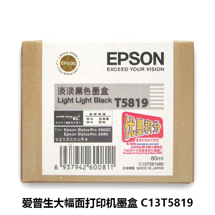 爱普生 大幅面打印机墨盒 C13T5819 适用3800C 淡淡黑