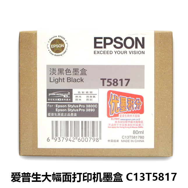 爱普生 大幅面打印机墨盒 C13T5817 适用3800C 淡黑