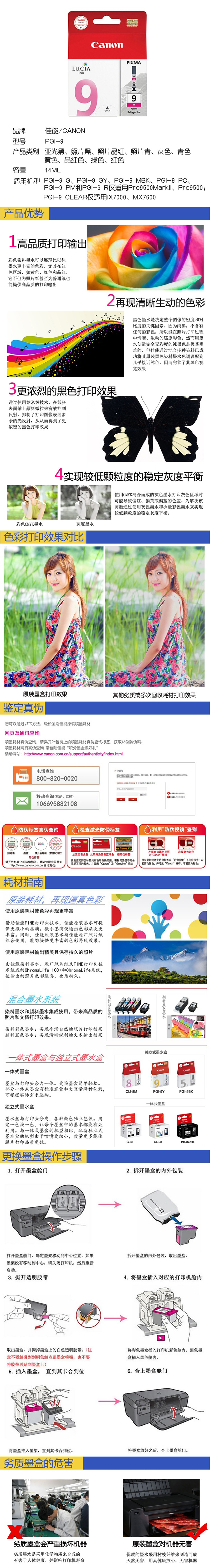 佳能PGI-9M 品红色墨盒(适用iX7000、Pro9500MarkII、Pro9500)