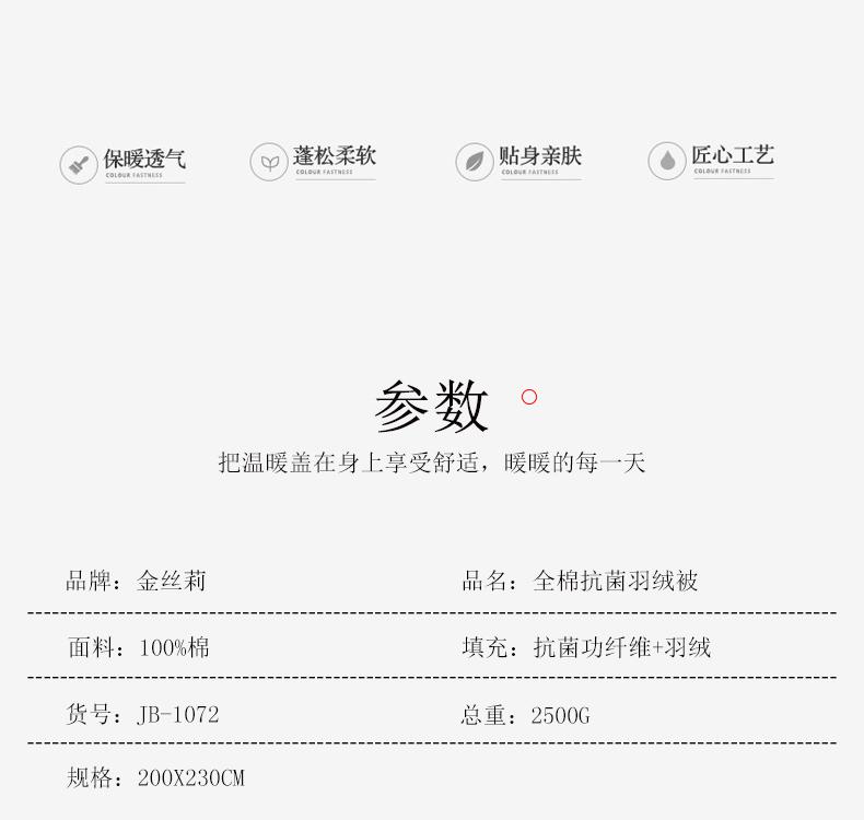 金丝莉 全棉抗菌羽绒被 JB-1072 200×230cm